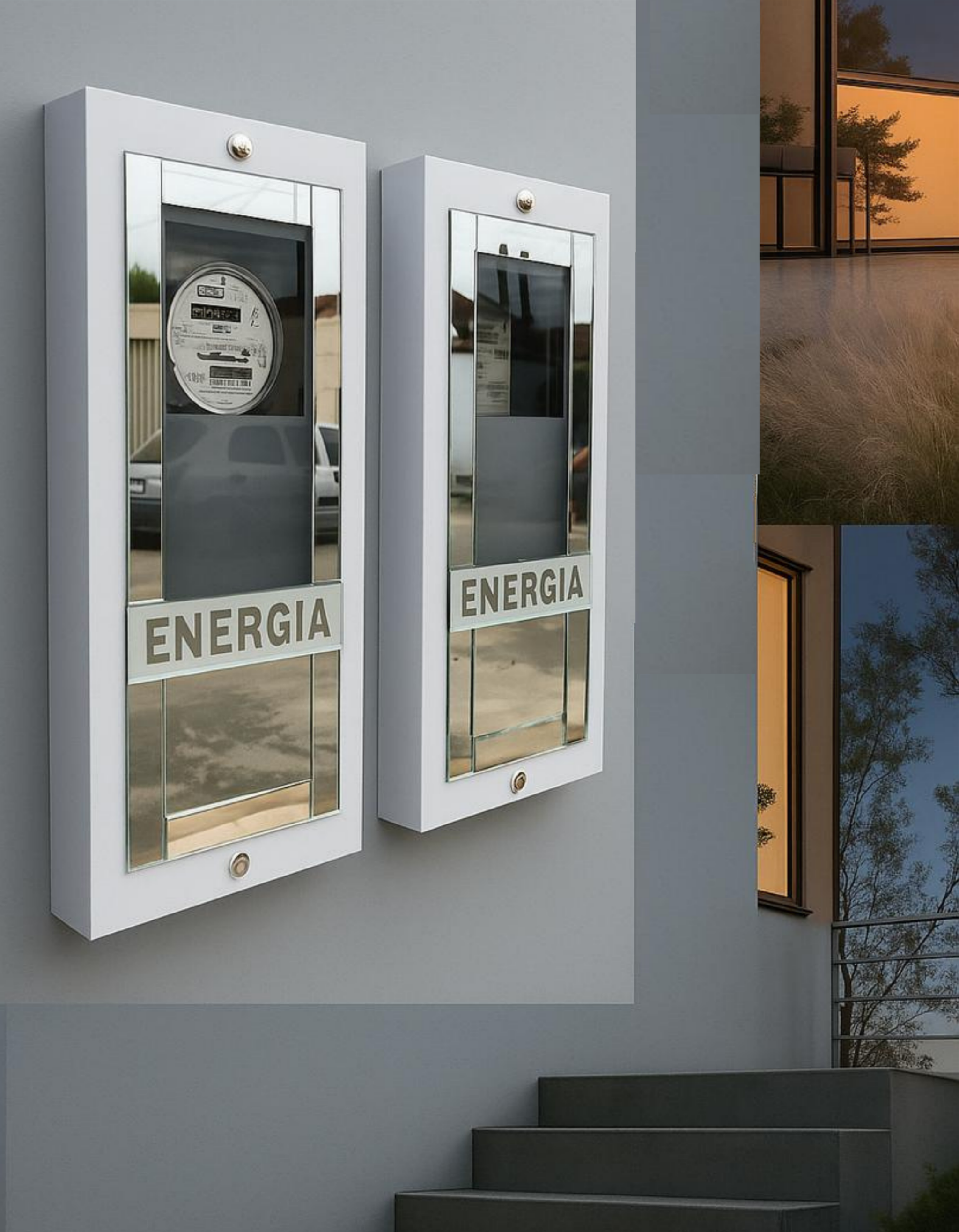 Porta frontal articulada: acesso rápido e seguro ao disjuntor e medidor.
